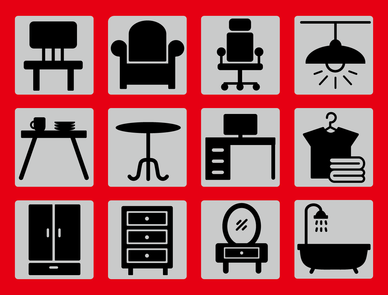 ヨーロッパに訪れた際に、日本ではあまり見かけない場所にピクトグラムやイラストの看板が使われているのが印象的だった為、そのイメージを元に作成しました。「ベルギーのアントワープにあるインテリアショップの店内サイン」という想定でデザインしました。